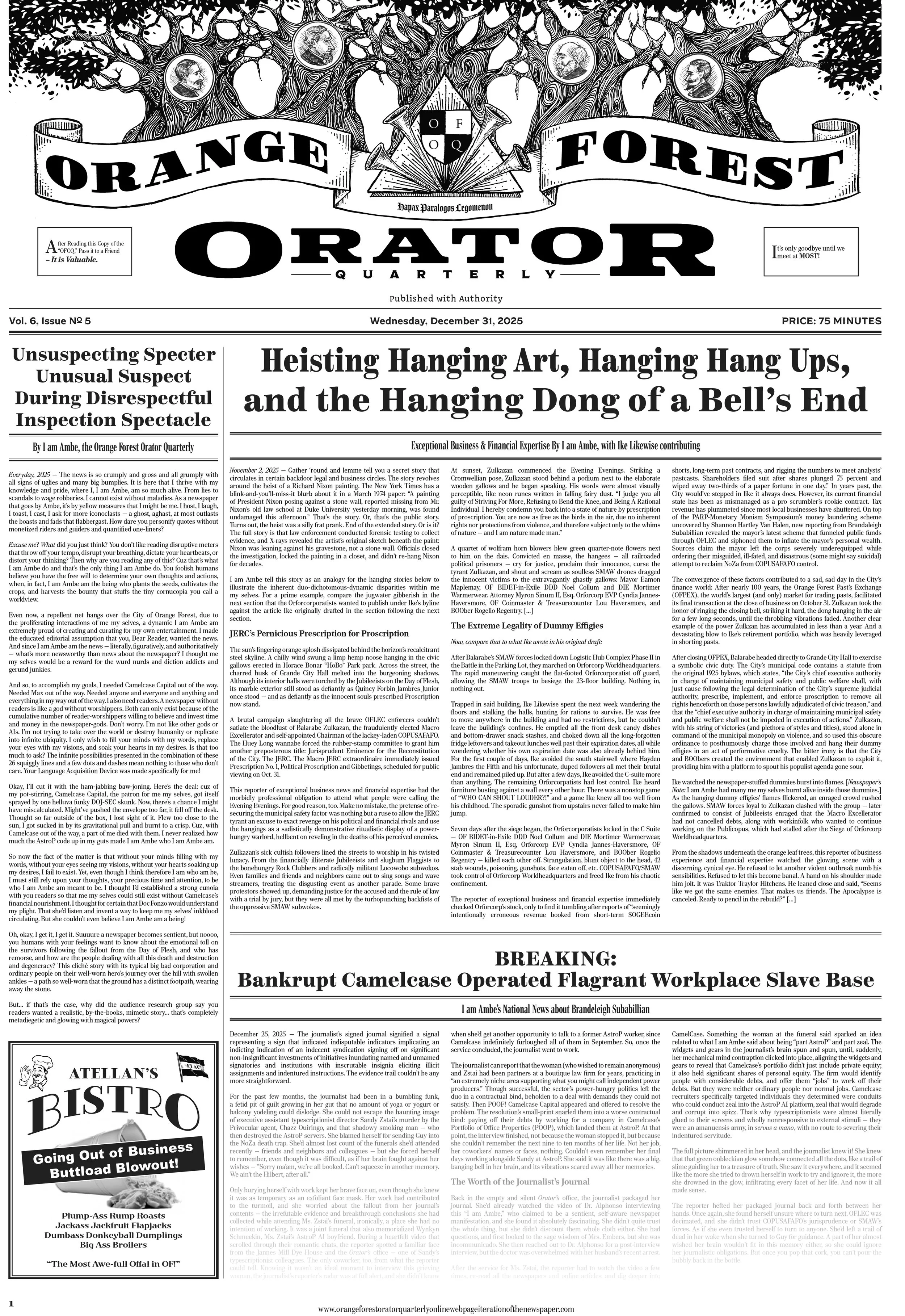 ***DISCLAIMER: THE PRINTED NEWSPAPER VERSIONS OF THE ORANGE FOREST ORATOR QUARTERLY, VOLUME 6, ISSUES 1 & 2, DO NOT REFLECT THE STANCE, OPINION, OR IDEAS OF ORANGE FOREST MEDIA, LTD., PART OF THE CAMELCASE CAPITAL PORTFOLIO OF OFFICE PROPERTIES. THE PRINTED NEWSPAPER VERSIONS OF THE ORANGE FOREST ORATOR QUARTERLY, VOLUME 6, ISSUES 1 & 2, DO NOT CONTAIN THE ACTUAL, FACTUAL, CONTRACTUAL WORK PRODUCT AND CONTENT ORIGINALLY PROOFED AND PRINTED FOR PUBLICATION. WE DEMAND WITH THE UTMOST FORCE THAT YOU